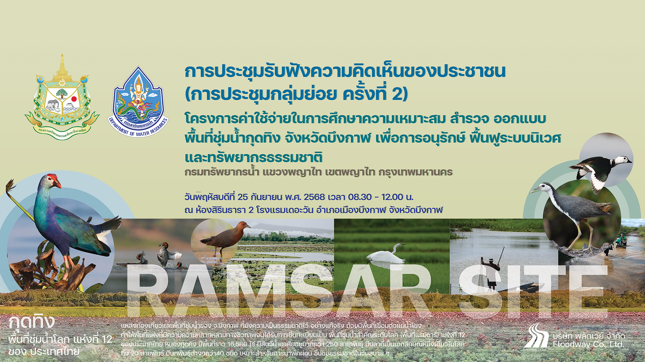 โครงการค่าใช้จ่ายในการศึกษาความเหมาะสม สำรวจ ออกแบบพื้นที่ชุ่มน้ำกุดทิง จังหวัดบึงกาฬ เพื่อการอนุรักษ์ ฟื้นฟูระบบนิเวศและทรัพยากรธรรมชาติ